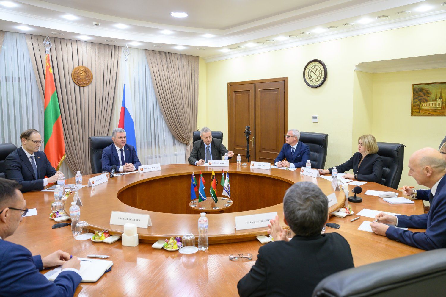 В переговорном зале Администрации Президента ПМР прошла встреча Главы приднестровского государства Вадима Красносельского со Специальным представителем Действующего председателя ОБСЕ Томасом Ленком. В составе европейской делегации прибыла также и. о. главы Миссии ОБСЕ в РМ Изабела Силвия Хартманн. С принимающей стороны к дискуссии присоединились Советник Президента ПМР Павел Прокудин, Министр иностранных дел ПМР Виталий Игнатьев, глава МВД ПМР Виталий Нягу и главный санитарный врач республики Наталья Берил.