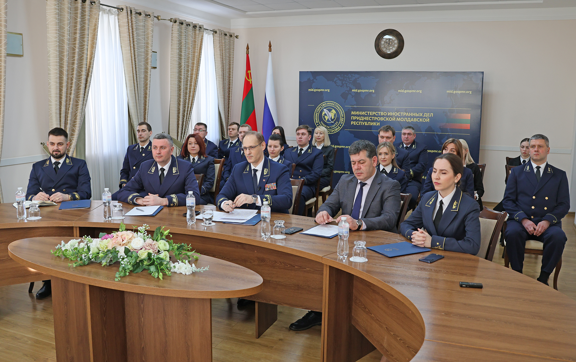 В Министерстве иностранных дел состоялось заседание отчетной коллегии, посвященной работе внешнеполитического ведомства в 2025 году. В мероприятии приняли участие Президент Вадим Красносельский, руководство Верховного Совета и Правительства, главы министерств и ведомств ПМР, министры иностранных дел Республики Абхазия и Республики Южная Осетия, Сопредседатель ОКК от Российской Федерации и другие участники.